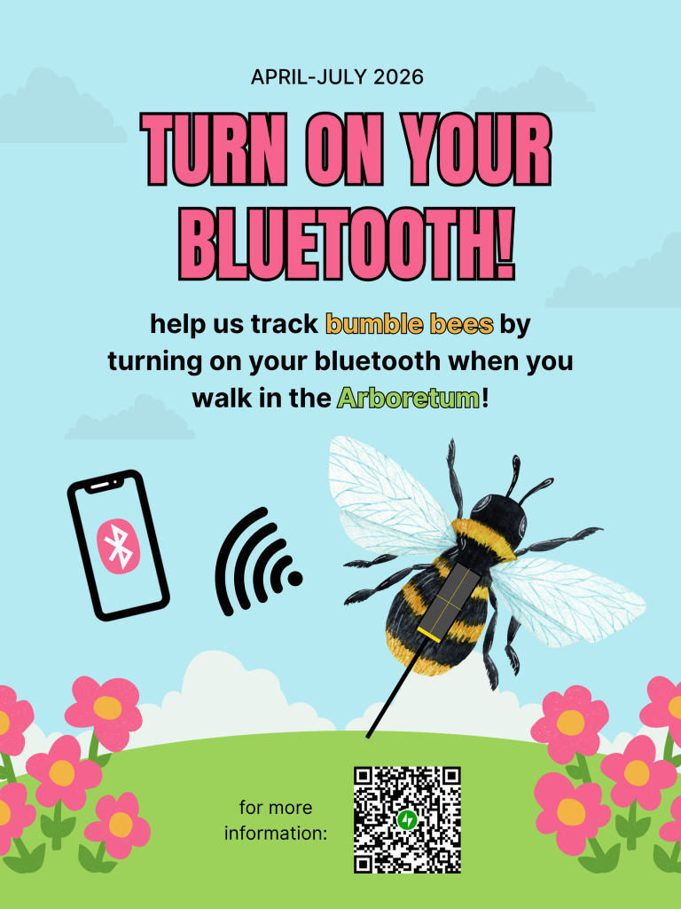 Using newly developed Blū+ radiotransmitters from Cellular Tracking Technologies, we will track common eastern bumblebee (Bombus impatiens) queens in the spring to gain insight into their movement behaviour while searching for nesting sites. Operating at a frequency of 2.4 GHz, these transmitters function similarly to Apple AirTags by using Bluetooth to connect to nearby cellular-enabled devices, allowing signals to be relayed through cellular networks and resulting in a high number of detections. In addition, Blū+ radiotransmitters are solar-powered and extremely lightweight (0.06 g), making them well suited for tracking flying insects. These transmitters were successfully used to track monarchs to their overwintering grounds in fall 2025, but have not yet been tested on bumble bees.